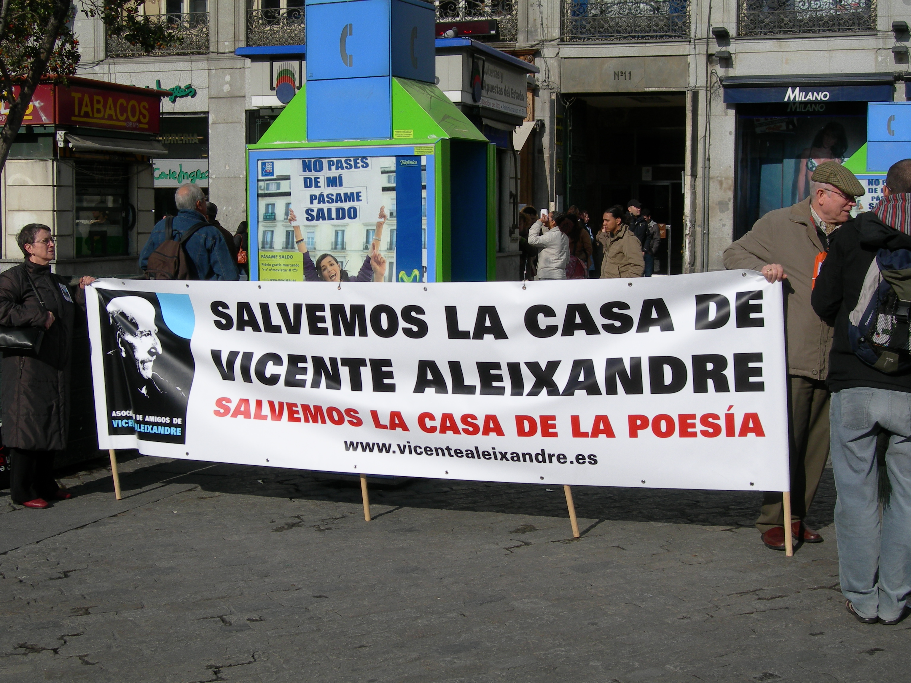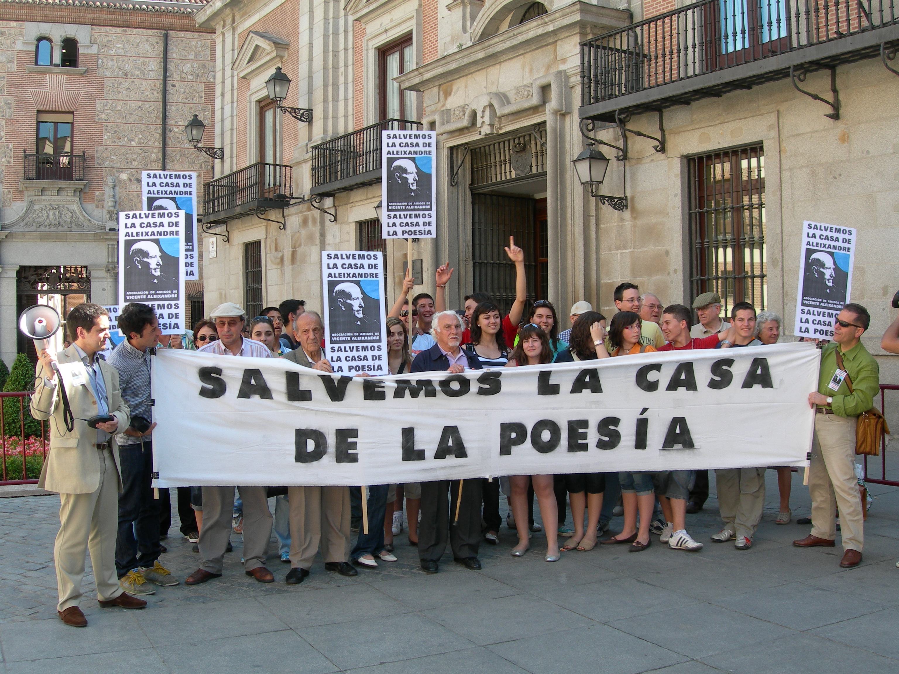 Nos parece una falta de respeto a la historia y al legado de nuestro poeta que su vivienda pueda transformarse en un centro alternativo. La casa de Vicente Aleixandre tiene que ser la casa de la poesía, no puede ni debe ser otra cosa. Esa ha sido la clara y firme voluntad de los numerosos intelectuales, poetas, artistas, escritores y amigos que nos han apoyado a lo largo de estos veintitrés años. Nuestro grito de denuncia y protesta ha sido en todo este tiempo SALVEMOS LA CASA DE LA POESÍA, y quienes no entiendan esto, no entienden ni lo que significa Velintonia en la historia de la literatura española del siglo XX, ni lo que representa Vicente Aleixandre en la poesía.
